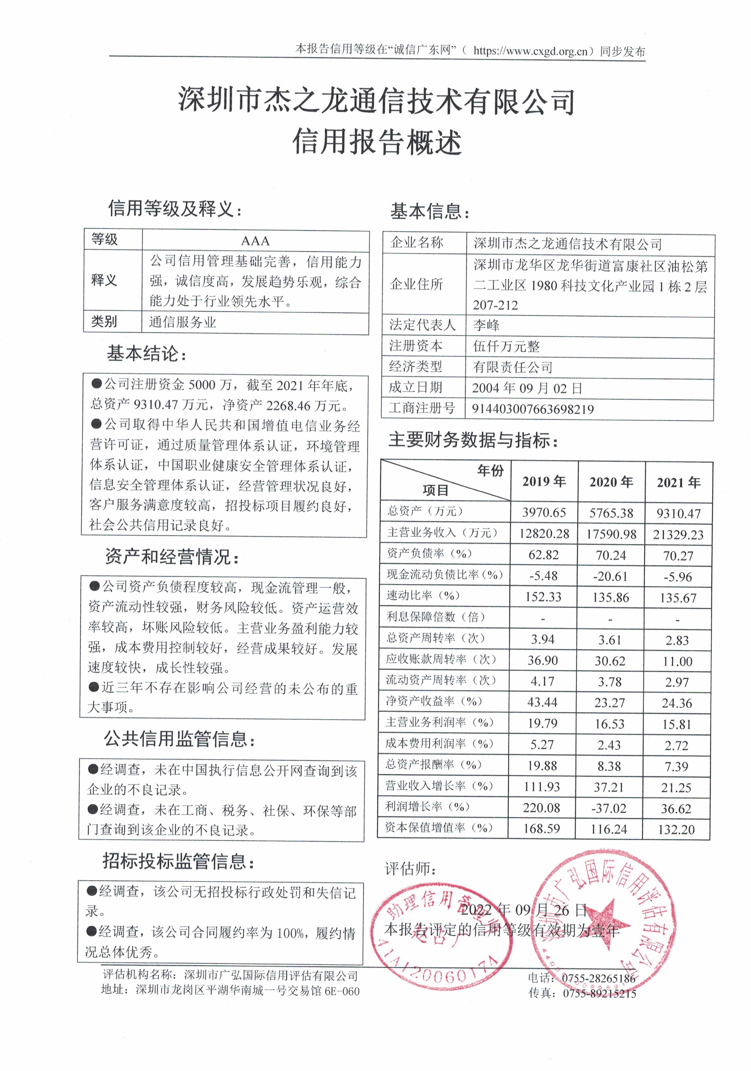信用等级评价 |